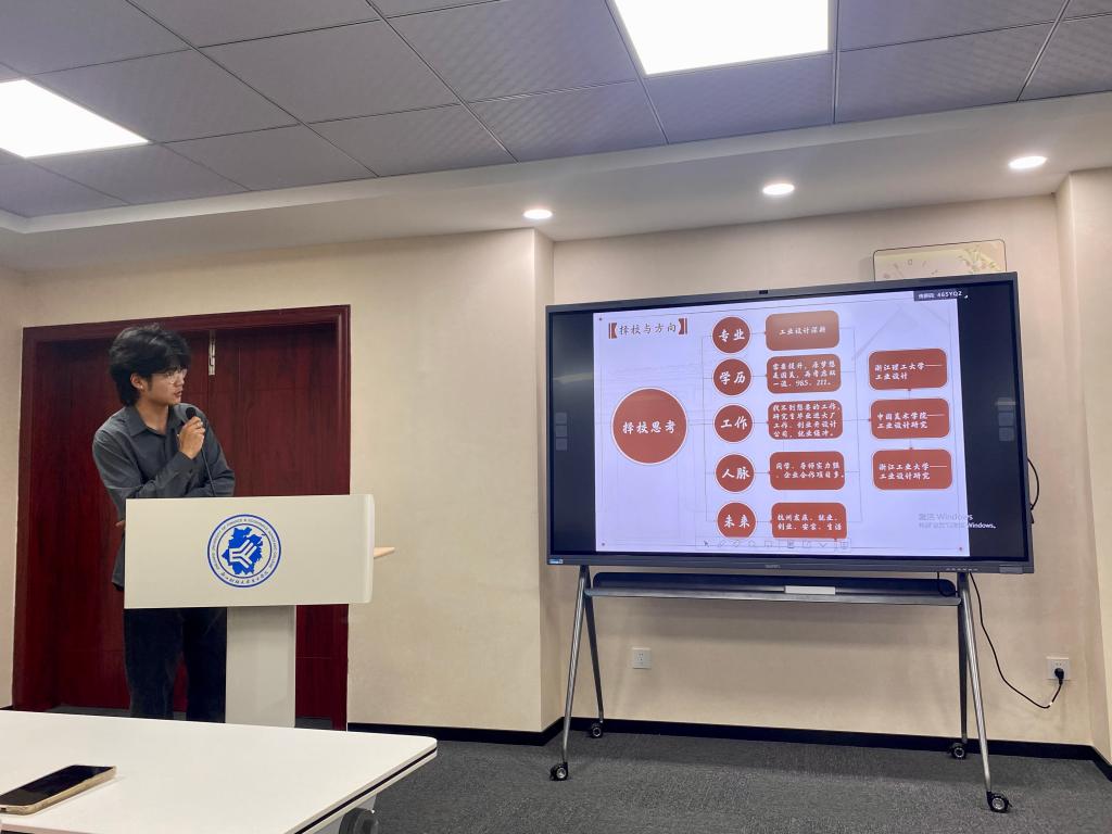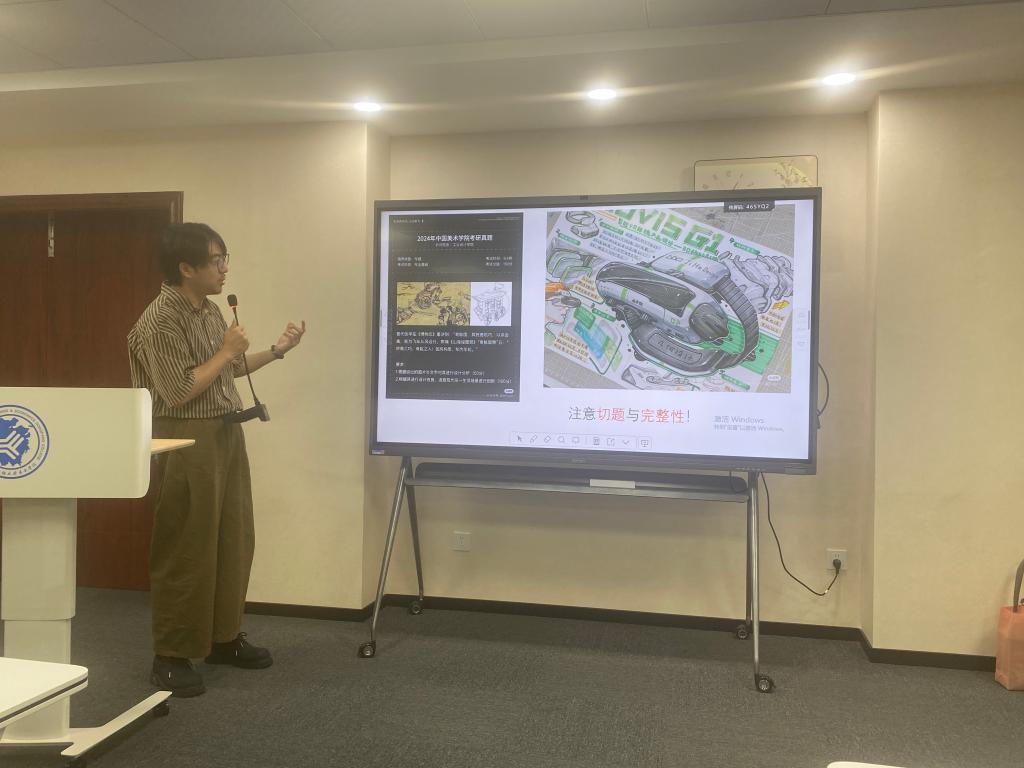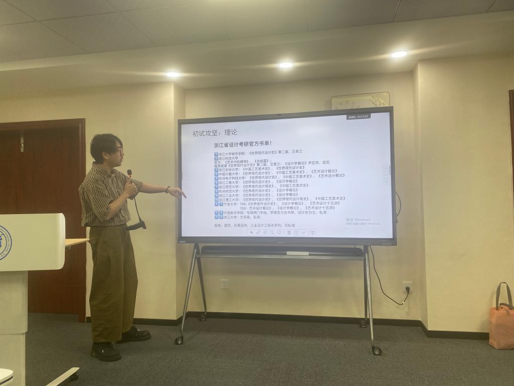 蔡恒宇学长在分享会上强调要“科学择校”,可综合考虑院校研究方向、院校资源、与职业规划的匹配度、报录比、考题特点、自身基础与备考时间等。“我最初报考的是中国美院工业设计学硕,但以2名之差遗憾落榜。”蔡学长坦言,“调剂时我调整策略,最终成功上岸浙江工业大学。”接下来蔡学长分享了政治、英语、专业课、调剂、复试具体备考经验。