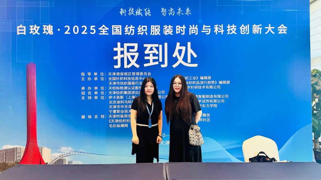 2025年6月10日至12日,公司服装与服饰设计系专业教师赵姝坦、白璐受邀参加了在天津举行的“白玫瑰·2025全国纺织服装时尚与科技创新大会”“中国纺织时尚趋势高端论坛”与“抵羊·2025天津时装周开幕式”等系列活动。本次大会由天津港保税区管理委员会指导,全国针织科技信息中心、《针织工业》编辑部、天津市纺织服装行业协会、《国际纺织品流行趋势》编辑部联合主办,以“科技赋能智尚未来”为主题,汇聚了来自全国各地的纺织服装行业专家、学者、企业精英及高校代表共150余人,共同探讨科技驱动下产业发展的新路径。