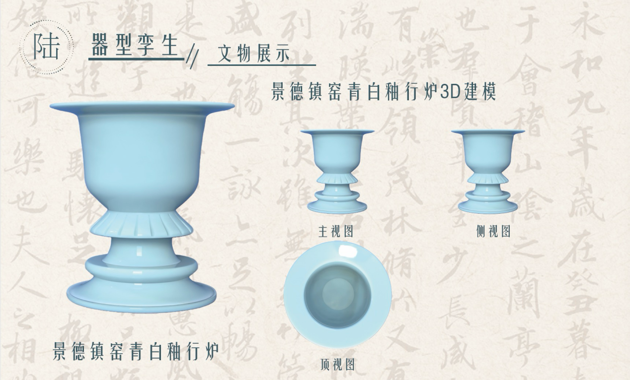 通过文献查找(古籍、像当代著作、论文等)、各大博物馆官网相关器物资料查找、3D数字化建模复刻、传统手工制作等方式全方位了解器物。