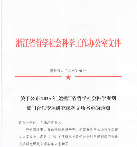 浙江省哲学社会科学工作办公室公布了浙江省哲学社会科学规划课题立项名单,公司立项2项。