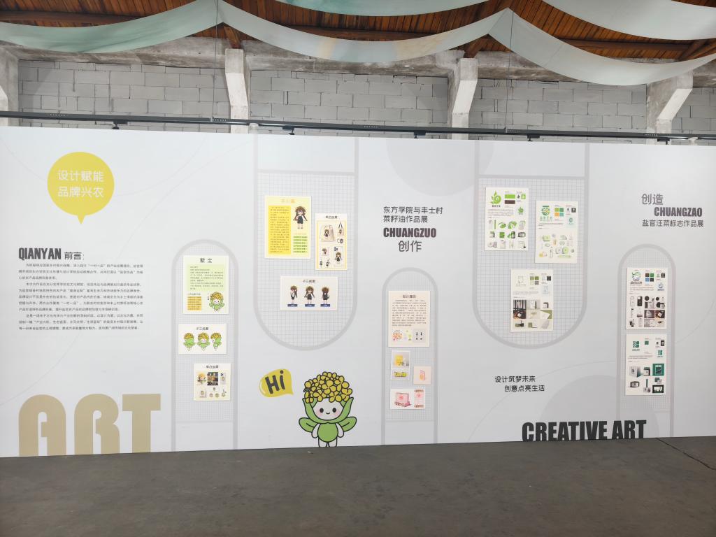 签约仪式后,胡国庭一行参观了大桃园乡村组团创业共富集,深入了解盐官镇各村产业特色与发展成果。公司以“设计赋能 品牌兴农”为主题,集中展示了以“盐官优品”为核心的农产品品牌形象体系。