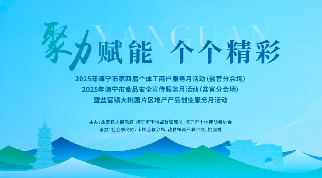 本次活动整合了2025年海宁市第四届个体工商户服务月(盐官分会场)、2025年海宁市食品安全宣传服务月(盐官分会场)以及盐官镇大桃园片区地产产品创业服务月三项重点活动,旨在凝聚资源、赋能盐官镇商户,服务地方产业发展,推动创业创新,强化食品安全意识,助力区域产业实现新突破。