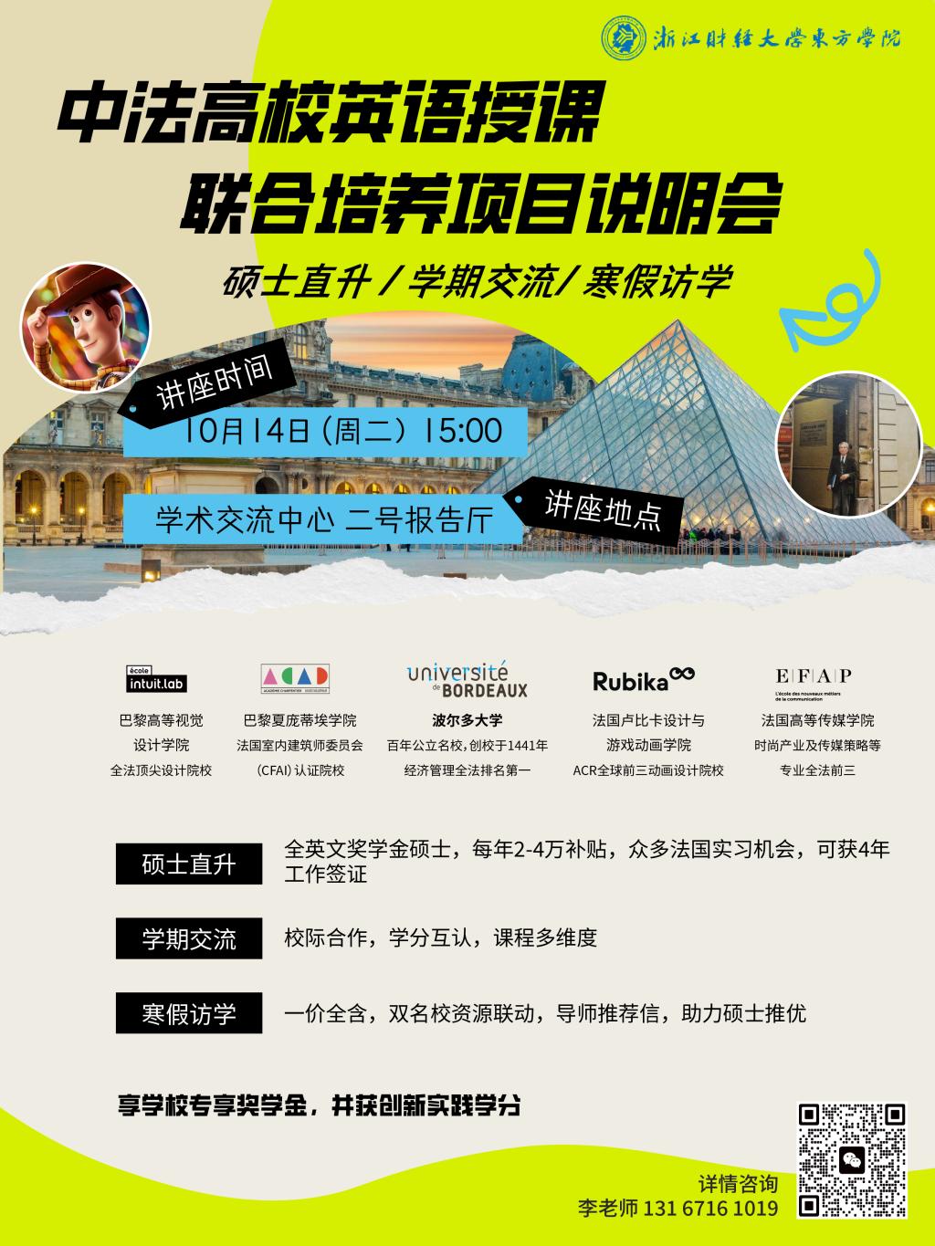 10月14日下午,2026年寒假法国短期交流项目的宣讲会在学术交流中心二号报告厅顺利举行,吸引了304永利集团员工的热情参与,现场氛围热烈。法国艺术高校代表李德亚担任主讲。
