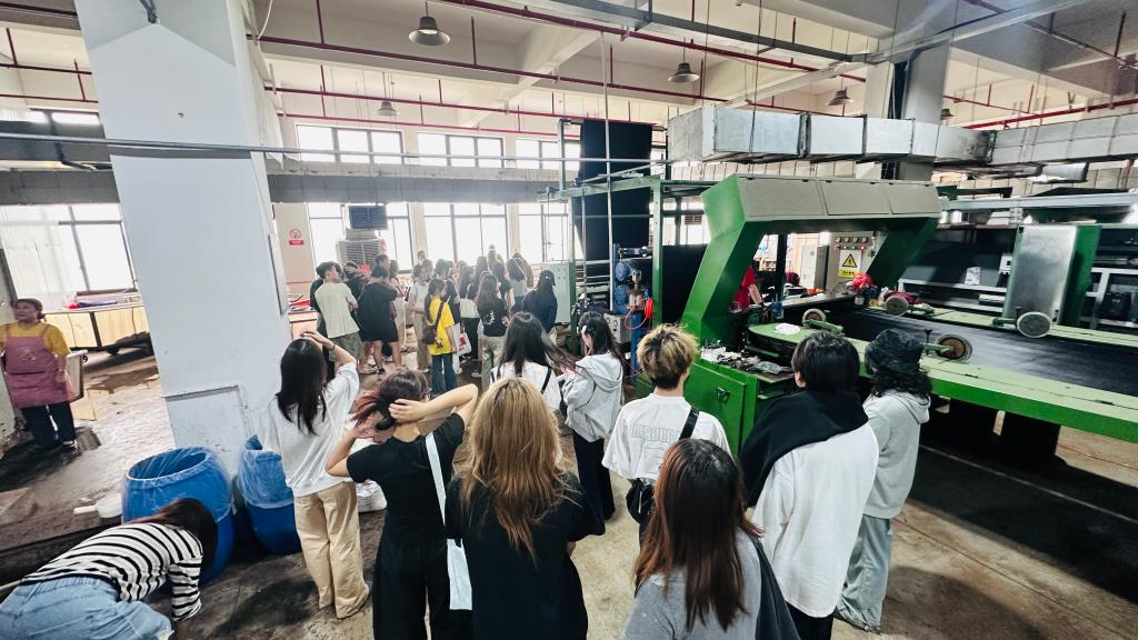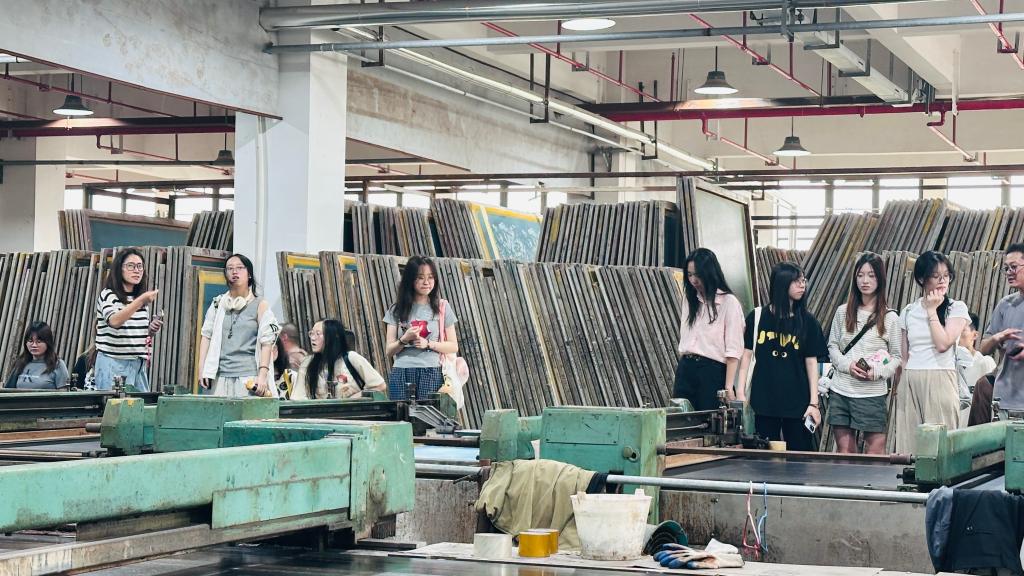 10月16日下午,在桐乡恒源环保科技股份有限公司董事长杨真真的带领下,服装与服饰设计专业师生走进生产车间,近距离学习了服装面料的印染与加工工艺。从面料前处理、染料调配到数码印花、丝网印刷、后整理,工作人员结合生产的现场向师生们进行了多个环节的技术要点与标准的讲解。