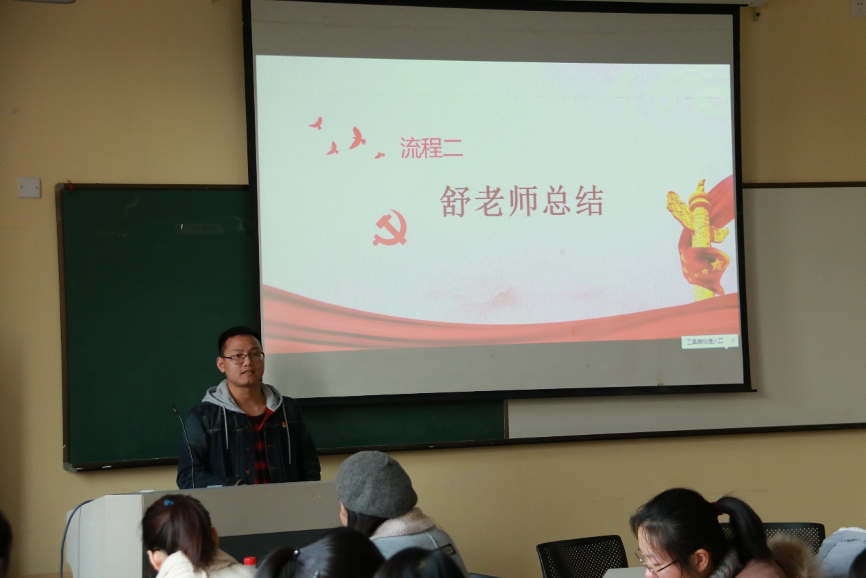 2019年12月3日下午,文化传播与设计分院员工第一、第二党支部于1教308召开“不忘初心,牢记使命”主题教育专题组织生活会,会议围绕学习教育、反思总结、党员民主评议三个部分展开,由员工第二党支部理论组汪佳丽同志主持开展。