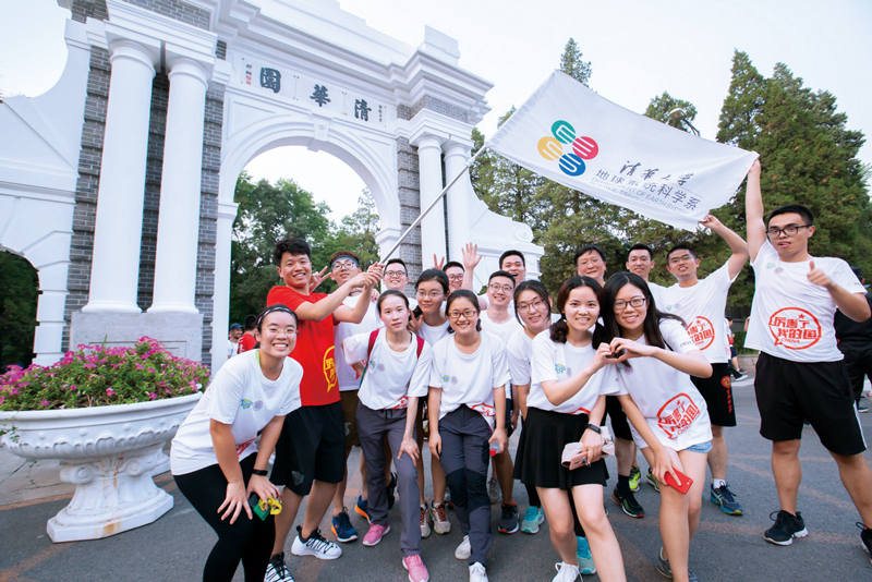 每年的毕业季,清华大学都会举行毕业长跑,即将离开母校的学子们沿着精心设计的路线,依次跑过那些承载着清华记忆的场所,重温“自强不息 厚德载物”的校训,上好离校前的“最后一课”。图为2018年7月4日,毕业生们在主题为“拥抱新时代 青春正起航”的长跑活动中在二校门前合影。 清华大学 李浩然/摄