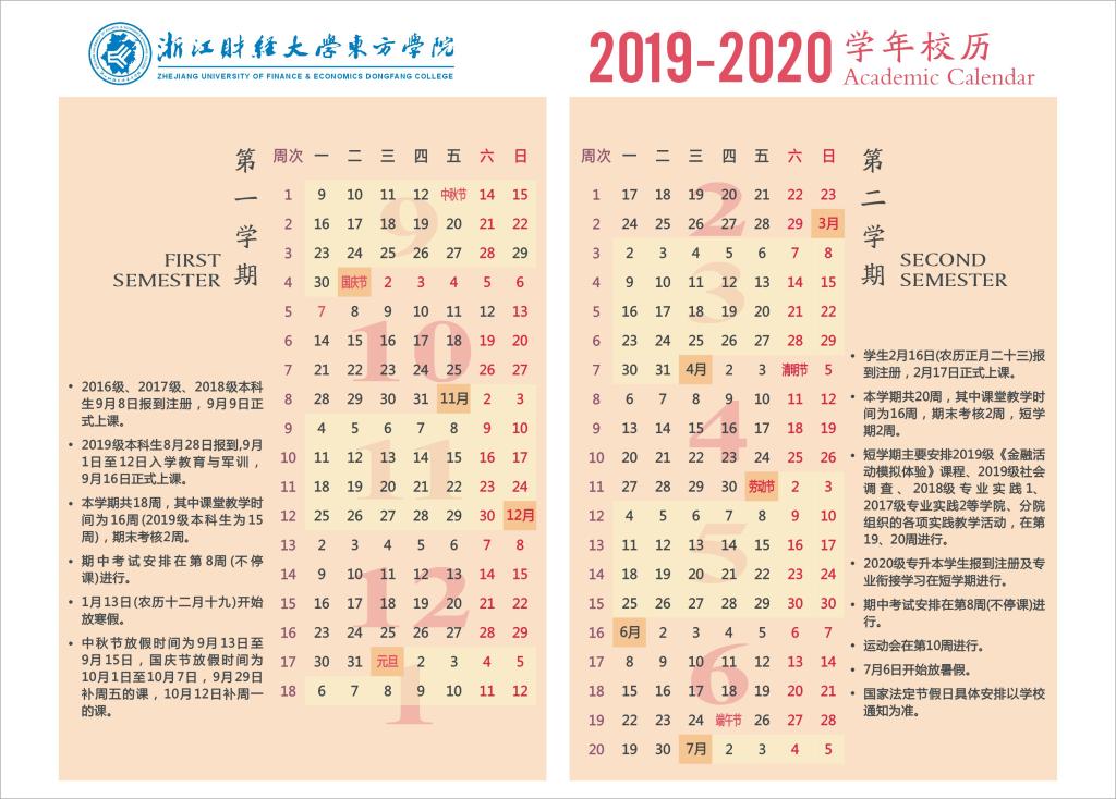 公司2019-2020学年校历