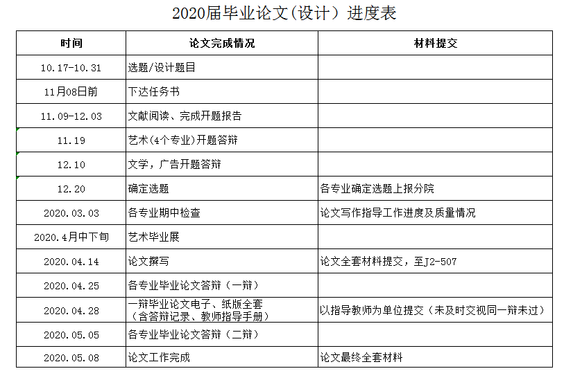 2020届员工毕业论文(设计)工作进度如下,相关工作方案请见附件。