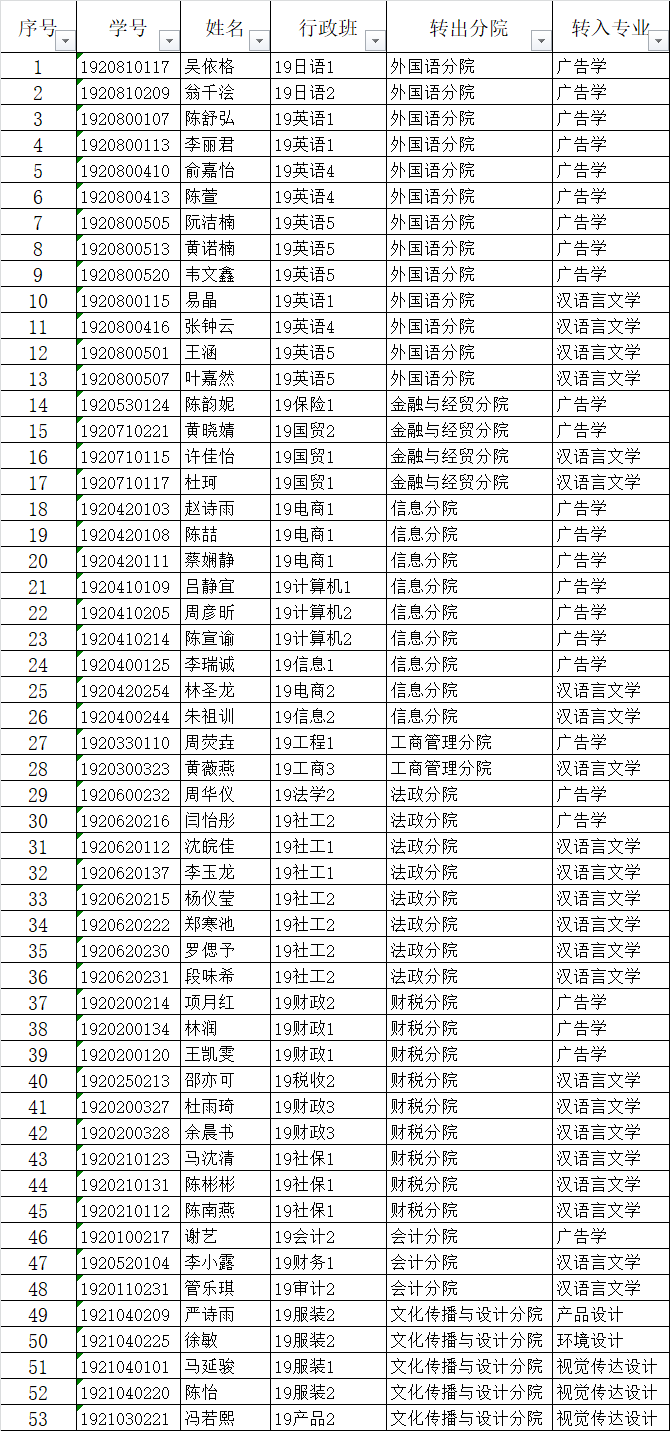 根据浙财大东教通〔2020〕4号《关于启动2019-2020学年第二学期2019级员工转专业的通知》,文化传播与设计分院将转入流程和要求公布如下: