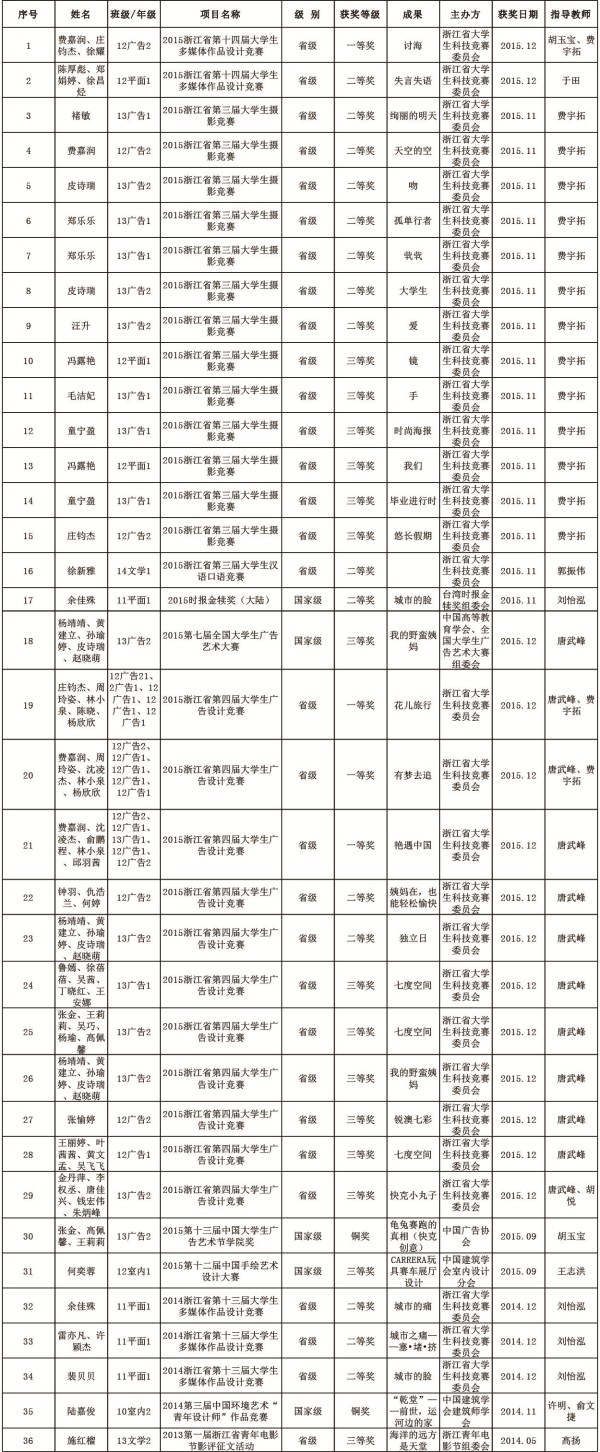 2016年文化传播与设计分院学科竞赛获奖成果一览表