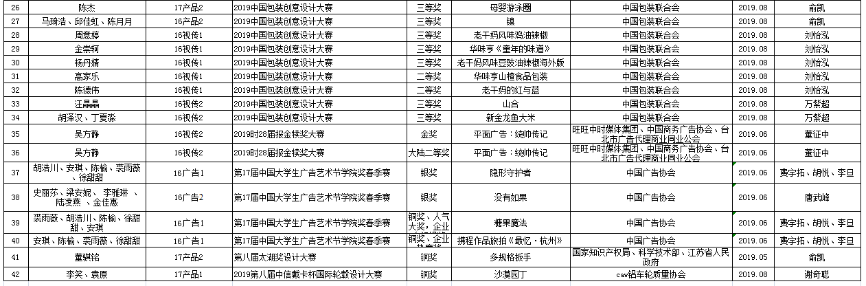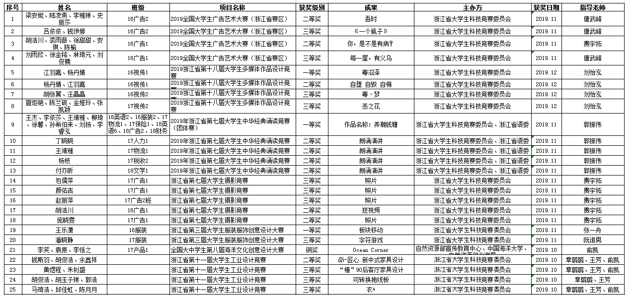 2019年文化传播与设计分院学科竞赛获奖成果一览表