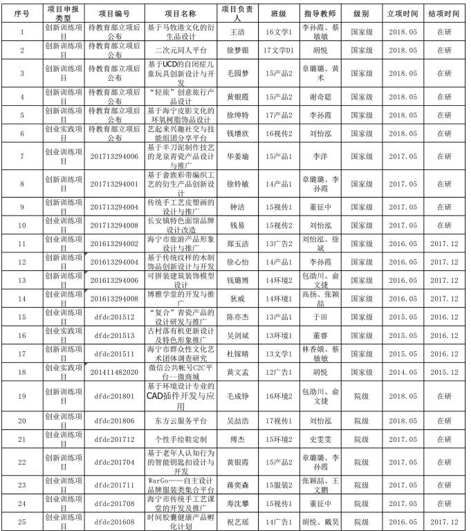 文化传播与设计分院老员工创新创业训练计划立项一览表