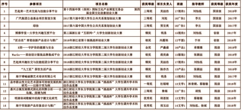 文化传播与设计分院老员工创新创业大赛获奖一览表